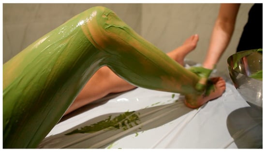 Peloids are blends of an inorganic or organic solid base and thermal water, which after a maturation process, are used for therapeutic purposes [54]. Those made of seawater are also called marine mud, or sea mud. For wellbeing purposes, peloids are mixed with macroalgae or any other natural product (e.g., herbs) and applied on the body in the form of poultices or cataplasms.