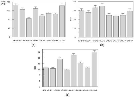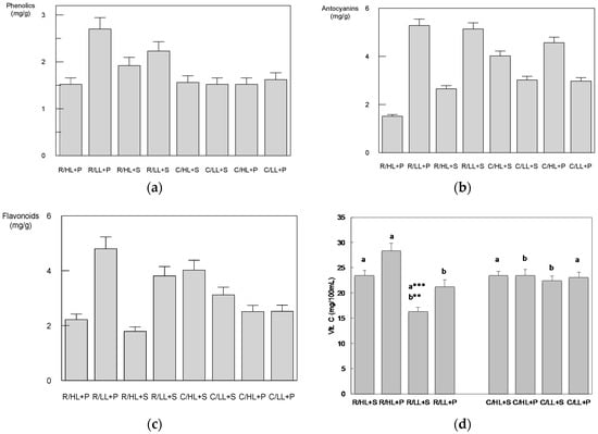 3.2. The Effect of Cultivars, Light Intensity and Substrate Compositions on Selected Secondary Metabolites