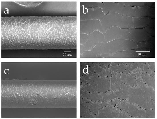 3.1. FE-SEM Observations of the Surface and Cross-Section of Human Hair Not Exposed to UV Radiation and the Surface and Cross-Section of Human Hair Exposed to UV Radiation