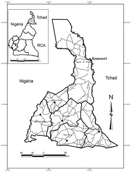 - Boutrais, J.; Boulet, J.; Beauvilain, A.; Gubry, P.; Barreteau, D.; Die’j, M.; Breton, R.; Seignobos, C.; Pontie, G.; Marguerat, Y.; et al. “Le Milieu Naturel”—Le Nord du Cameroun: Des hommes, une Région; ORSTOM (Collection Memoires n°102): Paris, France, 1984; pp. 19–100. [Google Scholar]