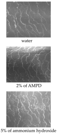 2.7. Field Emission Scanning Electron Microscope (FE-SEM) Observations on Human Hair Following the Use of AMPD Aqueous Solution or Ammonium Hydroxide as an Alkaline Agent