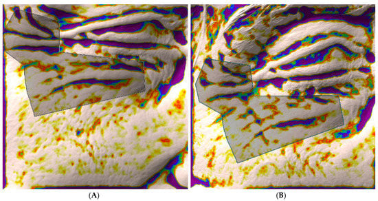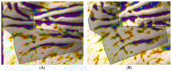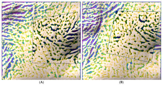 The trial was conducted between March 2018 and September 2018 in an outpatient derma-esthetic clinic. All 15 subjects completed the study. At baseline, the mean (SD) IGA score was 8.2 (1.0). After two months, the IGA score significantly decreased to 4.2 (1.4) (a 49% reduction) (p = 0.0007; Wilcoxon test) (Figure 1). In comparison with baseline, ANTERA 3D evaluations at month 2 showed a significant (p < 0.01; Wilcoxon Test) reduction in the coarse (Figure 2A,B), fine (Figure 3A,B) and periorbital (Figure 4A,B) wrinkle volume in the target area of −31%, −18% and −17%, respectively. The target area coarse wrinkle volume decreased significantly (p = 0.001; Wilcoxon Test) from 25.7 mm3 to 17.8 mm3. Target area fine wrinkles decreased significantly from 9.0 mm3 to 6.0 mm3 (p = 0.05; Wilcoxon Test). The melanin content also reduced significantly (p = 0.04; Wilcoxon Test) by 17% (Figure 5A,B), from 0.6 (0.03) AU to 0.5 (0.03) AU.