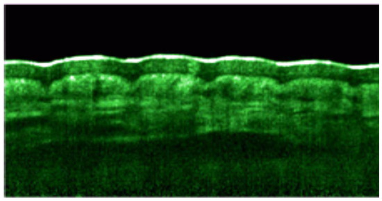 For healthy skin measurements, OCT allows real-time in vivo imaging that is capable of distinguishing thickened layers of SC as shown in Figure 4, and can clearly identify the epidermis, the dermo-epidermal junction, as well as the normal regional differences and well defined anatomical sites [60,151,152,153]. The information acquired at each depth of skin is achieved by adjusting the reference beam path length by scanning with the mirror.