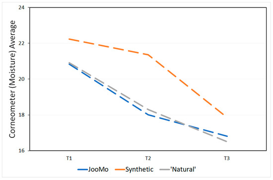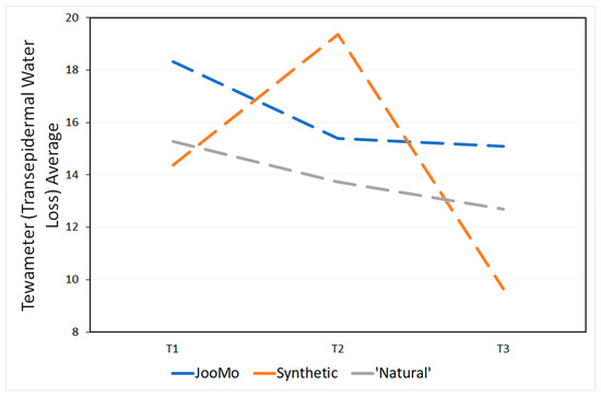 The products’ pH is shown in Table 4. During the study, the skin physiology, as revealed via the skin measurements of trans-epidermal water loss (TEWL using the Tewameter), pH and moisture (using the Corneometer), changed significantly for all groups (Figure 13 and Figure 14; Table 5 and Table 6).