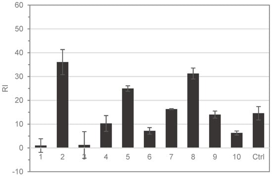 HTS-DCYA results of isolated compounds (RI = reactive index). Cinnamaldehyde was used as the positive control (Ctrl).
