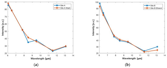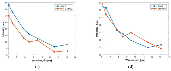 The OTTER spectra changes for (a) Site A, (b) Site B, (c) Site C, and (d) Site D.