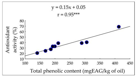 | Year | Accession | Total Phenol Content (mgEAG/kg of oil) | Antioxidant Activity (%) |