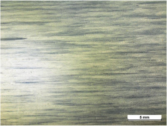 Considering the bending necessity of the coated aluminum on the top for the construction of the complete aerosol can, as the first indication, the aluminum panel was bent using a cylindrical mandrel with a 3 mm bar following ISO 1519, without the presence of visible cracks or layer delamination. Finally, the samples (175 × 25 mm and 0.5 mm of thickness) for the different tests were obtained by mechanical cutting from the coated aerosol cans.