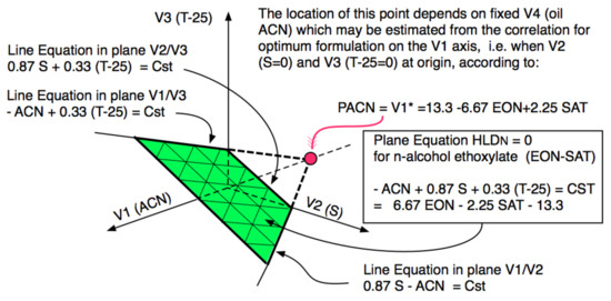 - Aubry, J.M.; Ontiveros, J.F.; Salager, J.L.; Nardello-Rataj, V. Use of the normalized hydrophilic-lipophilic-deviation (HLDN) equation for determining the equivalent alkane carbon number (EACN) of oils and the preferred alkane carbon number (PACN) of nonionic surfactants by the fish-tail method (FTM). Adv. Colloid Interface Sci. 2020, 276, 102099. [Google Scholar] [CrossRef] [PubMed]