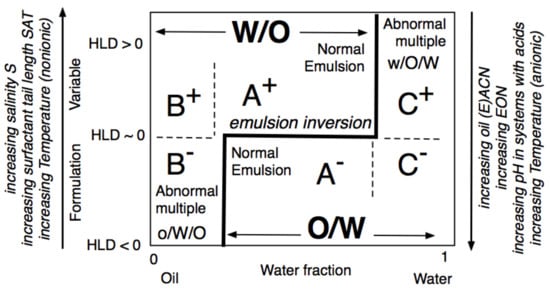- Salager, J.L. Emulsion phase inversion phenomena. In Emulsions and Emulsion Stability, 2nd ed.; Sjoblöm, J., Ed.; Taylor & Francis: London, UK, 2006; Chapter 4; pp. 184–225. [Google Scholar]