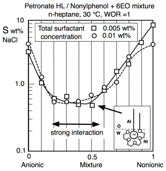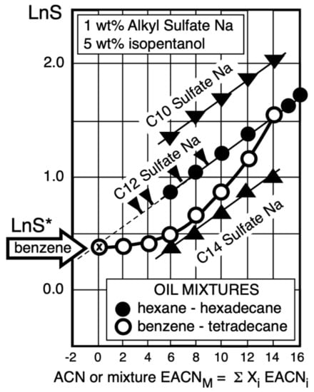 - Miñana-Perez, M.; Graciaa, A.; Lachaise, J.; Salager, J.L. Systems containing mixtures of extended surfactants and conventional nonionics. Phase behavior and solubilization in microemulsion. In Proceedings of the 4th World Surfactants Congress, Barcelona, Spain, 3–7 June 1996. Proceedings 2:226–234, Edited for AEPSAT by Roger de Llúria, Barcelona, Spain. [Google Scholar]
