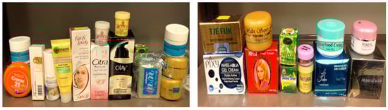 Skin-lightening cosmetics are commonly used by women who perceive lighter skin as a beauty enhancement—regardless of the ingredients of the cosmetics. In Asia, the sale of such products has increased annually by up to 20% from 1997–2003. In Thailand, their sales contributed more than 60% of the country’s annual USD100 million facial skincare market []. As a populous country, Indonesia is a promising market for such products because of the increasing demand and cosmetic trends []. There are, however, legal requirements and safety concerns. Toxic ingredients, such as mercury have been identified in cosmetic products [,,,]. The Indonesian National Agency of Drug and Food Control works to overcome this problem as cosmetics containing various toxic ingredients spread widely in the market [,].