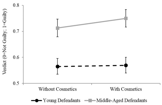 Given that cosmetics increase attractiveness (which is advantageous for defendants) but also increase apparent age in young female faces (which is disadvantageous for defendants), it is unclear what the overall effect of cosmetics would be on jury decisions. No study yet has examined the influence of cosmetics on jury decisions and so we aimed to investigate this relationship. Given the differential effects of cosmetics on age perceptions depending on actual age, we analyzed jury decisions for two age groups: young women (i.e., approximately 20 years old) and middle-aged women (i.e., approximately 50 years old). If the attractiveness effect is more important than the age effect, we would expect both young and middle-aged women to receive more lenient sentences while wearing cosmetics. If, however, apparent age has a stronger effect than attractiveness, when wearing cosmetics, young women should receive harsher sentences while middle-aged women should receive more lenient sentences.