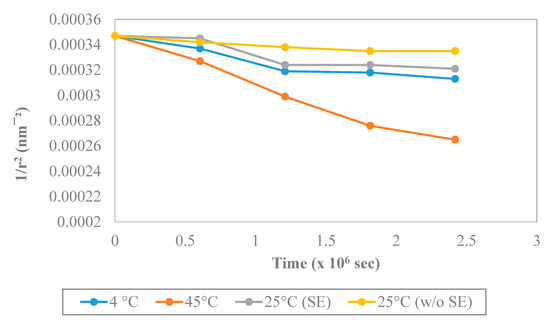 Graph of 1/r2 vs. storage time.