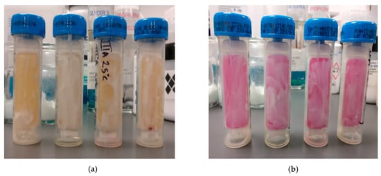 The microbial challenge test was performed using Schulke+ mikrocount® duo dipslides containing two agar surfaces (the yellow agar surface promotes bacteria growth, i.e., Staphylococcus spp and Escherichia coli, while the pink agar surface promotes yeast and fungi growth).