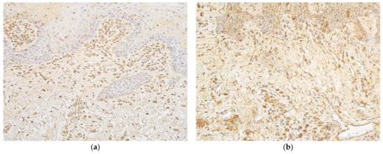 M1-, M2-, and TNF-α-positive cells were present in both the cleft affected tissues and controls. However, the amount of M1 in patients’ material was greater than in the control, suggesting a more pro-inflammatory environment in the cleft affected lip tissue. This was in agreement with other studies, in which more pronounced oral tissue inflammation in children with clefts had been reported [,,]. Interestingly, no notable inflammation with inflammatory cells was detected in 6 out of 20 haematoxylin and eosin stained tissue samples, whilst cells weakly stained with antibodies against M1, M2, and TNF-α antigens were observed there. This suggested a role of specific targeting of inflammatory cells, which otherwise could not be visualised.