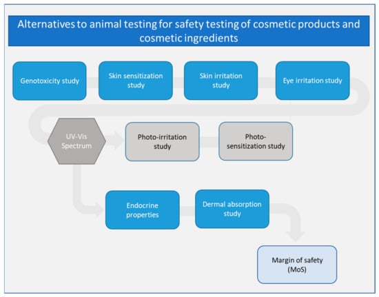 Overview of different alternatives to animal testing for safety assessment of cosmetic products and cosmetic ingredients. Assays in grey are not discussed in this review.