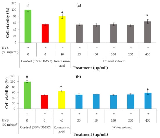 3.2. Effect of P. australis Extracts on the UVB-Induced Keratinocyte Death