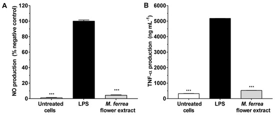 2.7.3. Inhibition of NO Production and Pro-Inflammatory Cytokines