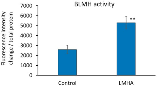 Effect of LMHA on BLMH activity in cultured human epidermal keratinocytes. n = 3, mean ± standard deviation, ** p < 0.01 vs. control.