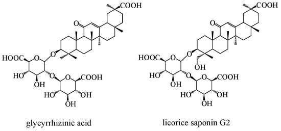 - Li, F.; Liu, B.; Li, T.; Wu, Q.; Xu, Z.; Gu, Y.; Li, W.; Wang, P.; Ma, T.; Lei, H. Review of Constituents and Biological Activities of Triterpene Saponins from Glycyrrhizae Radix et Rhizoma and Its Solubilization Characteristics. Molecules 2020, 25, 3904. [Google Scholar] [CrossRef]
