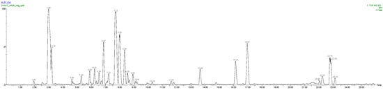 LC/MS chromatogram (BPI) of the glycerol/water Alpine rose extract—negative ion mode—ESI source.