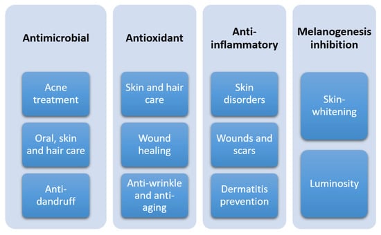 Indeed, some industries are developing many efforts to establish “green chemistry” to reduce or avoid both the use and creation of substances that are dangerous to the environment and even human health. Therefore, such new technologies enhance the production of targeted biocompounds that are to be incorporated as cosmeceutical ingredients with some advantages, such as a less cultivation time, high concentration/extraction of targeted compounds and less environmental damage.