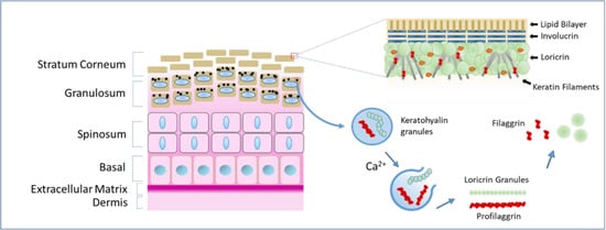 - Candi, E.; Schmidt, R.; Melino, G. The cornified envelope: A model of cell death in the skin. Nat. Rev. Mol. Cell Biol. 2005, 6, 328–340. [Google Scholar] [CrossRef]
