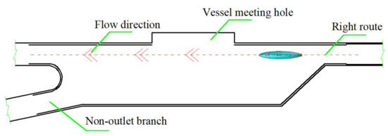 As shown in Figure 4, the obstacle avoidance in the water conveyance tunnel mainly refers to: First, avoiding the vessel meeting holes in the tunnel to prevent the AUV from entering the meeting hole, affecting the relative positioning of the AUV and even causing damage to the AUV. The second is to avoid non-outlet branch.es Since there are many branch exits in the water conveyance tunnel and the AUV needs to be recovered from the designated branch exits [13], it is necessary to identify the branch exits based on the positioning data [14] to avoid driving out from the wrong branch exit and affecting the completion of the work task and the AUV recycling.