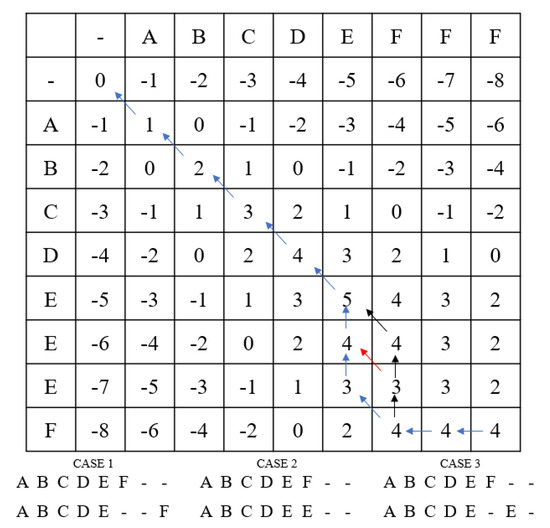 - Needleman, S.B.; Wunsch, C.D. A general method applicable to the search for similarities in the amino acid sequence of two proteins. J. Mol. Biol. 1970, 48, 443–453. [Google Scholar] [CrossRef]