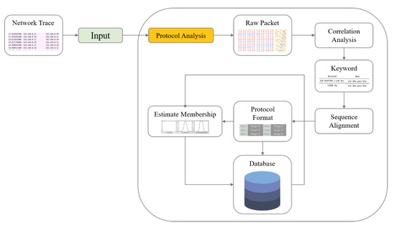 The figure above shows the architecture of the network state inference algorithm through the application of protocol analysis. Through protocol analysis, syntax and semantics of unknown protocol are found, and through this, important state information for network management is obtained [39].