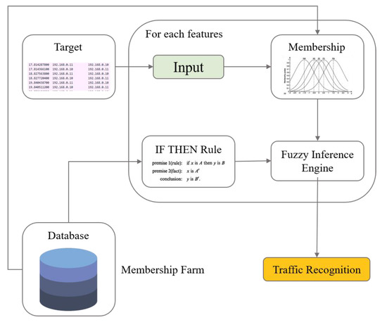 The If–Then rule created such as can be used to recognize the traffic type by using the fuzzy inference value for each rule as a probability. In this case, various advanced defuzzing algorithms such as the weighted average defuzzification method can be applied to these rules and estimated values, and through this, the level of fuzzy membership for each feature can be comprehensively determined, thereby providing a stronger basis for judgment.