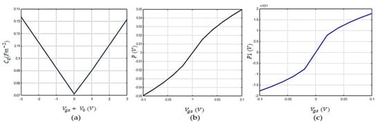 Graphical representation of gate-to-source voltage with quantum capacitance and surface potential as: (a) quantum capacitance as a function of top-gate-to-source voltage and (b) surface potential P (V) vs. top-gate-to-source voltage of a graphene field effect transistor (FET) from equation of surface potential []. (c) Surface potential P1 (V) vs. top-gate-to-source voltage (V) from Laitinen equation of Fermi level shift [].