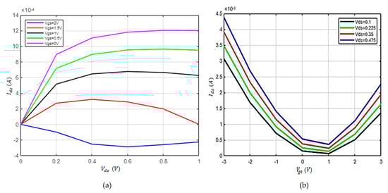 where and . Here and can be found from Equation (5). One can derive a simplified drain current Equation (11) by substituting the above values in Equation (10):