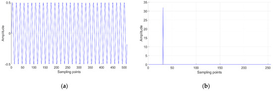 A value of a = 1 corresponds to a rectangular window, a = 0.5 indicates a Hanning window, and a = 0.54 implies a Hamming window. In this study, a rectangular window was used to calculate the spectrum with Equation (2). A rectangular window exhibits inherent limitations, but unlike other window functions, it can ensure that spectral bins remain mutually independent after a discrete Fourier transform of the signal. The use of other window functions often produces a correlation between the power spectrum bins, which makes any subsequent calculation of probability distributions extremely difficult.