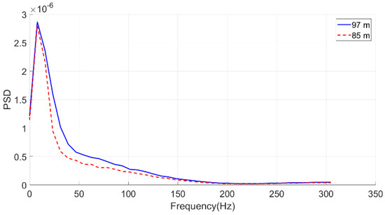 Average power spectral density (PSD) at 97 m and 85 m.