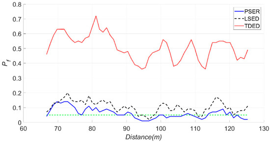 As seen in Figure 26, the detection probability of LSED was greater than that of the PSER, and the false alarm probabilities of LSED and the PSER were close to a, which indicated that the detection results of LSED and the PSER were correct.