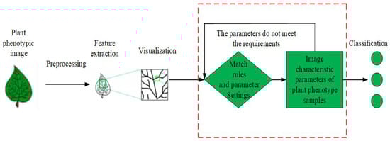 The research on PPIR started late domestically, but it is worth learning from. In 2007, Wang et al. [17] used a moving center hypersphere classifier to classify eight geometric features and seven image invariant moments that were extracted from ginkgo leaves with an accuracy rate of 92%. In 2009, Wang et al. [18] extracted the feature vectors of maize leaves while using morphology and contour extraction, and then classified them while using the genetic algorithm for optimized selection of the features. Subsequently, Fisher’s discrimination method was used in order to identify the diseased leaves with an accuracy rate of more than 90%. In Reference [19], Zhai et al. used the relational matching structure method to match the plant leaves images and different model structures after feature extraction, and identified the types of plants based on the matching level. In 2015, Wang et al. [20] proposed a plant leaves fusion-based recognition system to extract the development characteristics of a variety of foliage plant phenotypic traits, such as shape, color, texture, leaf margin, etc. Support vector machine (SVM) classification was used for plant identification, and the experimental results showed that an accuracy of 91.41% was achieved while using the SVM, which was better than that with a BP neural network or the KNN algorithm. In spectroscopy, Cen et al. [21] used hyperspectral imaging technology in combination with supervised classification algorithm for cucumber freezing damage detection, selected and compared the best band in the experiment, and finally adopted three algorithms of naive bayes, SVM, and KNN for classification; the results showed that the accuracy was higher than 90%, showing the outstanding potential of hyperspectral imaging technology in plant disease detection.