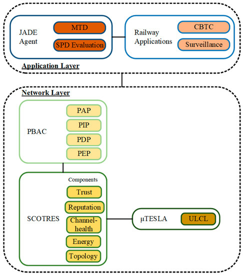 TrainIntegrity utilizes WSNs to check the integrity of cargo trains [50]. The nodes consist of the RCM 3400 RabbitCore module and sense environmental parameters. The WSN raises an alarm if it infers that an unexpected change has occurred in the train’s composition. CMLRVT is built and tested on a tramway operation in Poland. The system consists of a dispersed sensor network that is installed on the vehicles and railway infrastructure, along with the data acquisition component and a data server that maintains the artifacts of the management and analysis procedures. At first, the system collects data during normal operation, which is stored in the server. Then, the new pieces of knowledge that are sensed by the devices are compared with the nominal values. The detected variations are further analyzed by the system, revealing safety-related incidents (e.g., rail cracks) that are presented to the user through a dedicated application. However, neither of the two systems considers security issues at the network link, nor do they integrate and manage the heterogeneous underlying embedded systems.