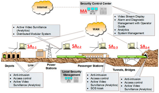In this context and considering that a successful attack could damage the railway’s operation or even cause severe injuries and deaths, cybersecurity is an important consideration for such interconnected critical systems [11,12]. Attackers can disrupt communications (e.g., through jammers) or even infiltrate the networks and take control of critical equipment [13]. Cyber-attacks on the command-and-control centers (C&C) and the information systems are also feasible [13,14]. Thus, the secure interconnection of all the deployed elements and platforms is important, and the cyber and physical security of the critical infrastructure becomes imperative [9,10].