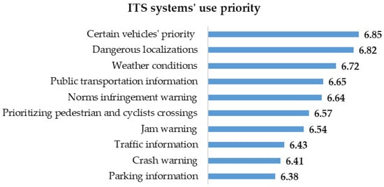 Priority of the use of intelligent transportation systems (ITS) according to Dominican citizens.