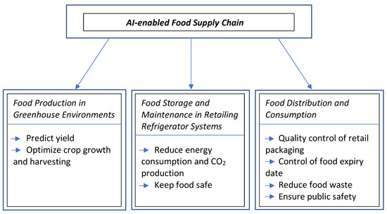 In the food supply chain, machine learning methods can be effectively used in a hybrid parallel framework for controlling massive amounts of food retailing refrigeration systems. This was shown in a recent implementation [56], in which multiple LSTM models were coupled with a MongoDB database [57] and were trained, using 110,000 real-life datasets—from about 1000 refrigerators.