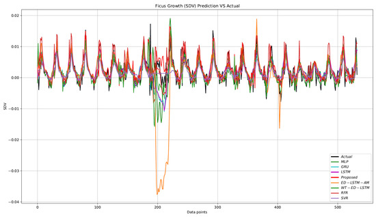 Figure 4 shows the accuracy of Ficus growth one-step prediction by all methods for about 600 data samples. It can be seen that the described model successfully performs one-step ahead prediction, outperforming the other methods and providing accurate estimates of almost all peak values in the original data.