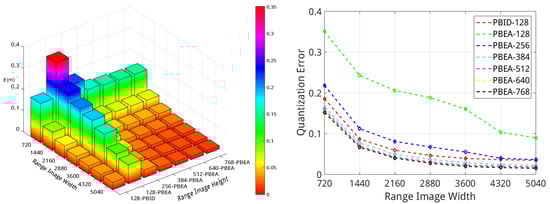 It is also observed from Figure 4 that with the increase of range image height in PBEA, its quantization error drops significantly. For PBID, the range image height cannot be changed and must be set to the number of LiDAR channels. However, for PBEA, the range image height can be set to arbitrary values. This additional flexibility makes the PBEA approach more appealing.