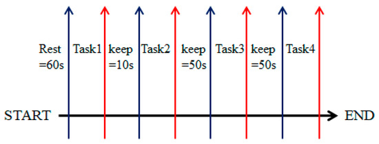 In order to increase the controllability and practicability of upper-limb auxiliary equipment, four common upper-limb movement paradigms in daily life designed in daily life: Lifting up, putting down, pulling back and pushing forward. During the experiment, the near-infrared data of the subjects in different motion states were collected to provide a supervised learning data set for subsequent research on motion intention recognition. The experimental process is shown in Figure 1. Tasks 1, 2, 3, and 4 in the figure represent the four action paradigms of lifting up, putting down, pulling back, and pushing forward, respectively.