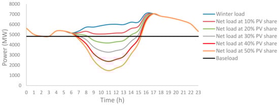The impact of the PV system penetration level on the grid in terms of net load during the winter season.