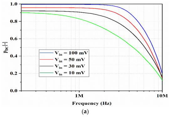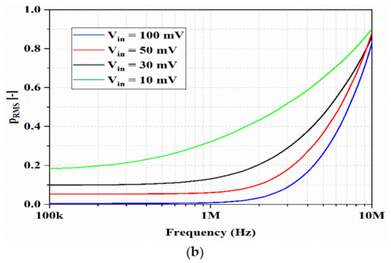 It can be observed from (25) that the output of the proposed full-wave rectifier circuit is affected at a higher frequency due to the presence of parasitic components.