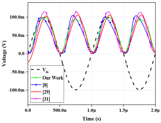 The performance of the presented full-wave rectifier circuit is compared with the available existing literature as shown in Table 2 in terms of tunability, the number of passive components, input, and output impedance. As evident from Table 2, the presented design of the full-wave rectifier circuit contains high input impedance along with low output impedance as well. Moreover, it does not require any passive components and provides electronic tunability features. The recent articles in literature [19,20,21,22,25,26,27,28,29,30,31,32,33,34,35,36] present rectifier design, but most of them do not provide tunability features (see Table 2).