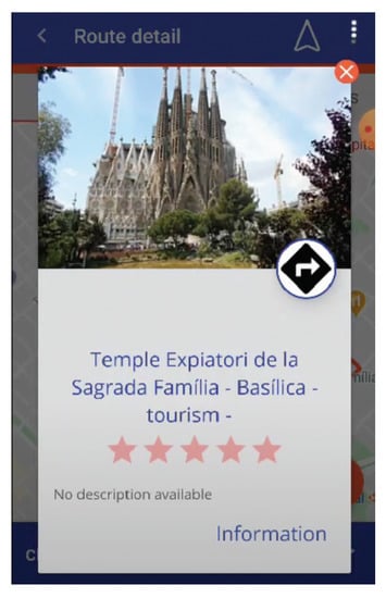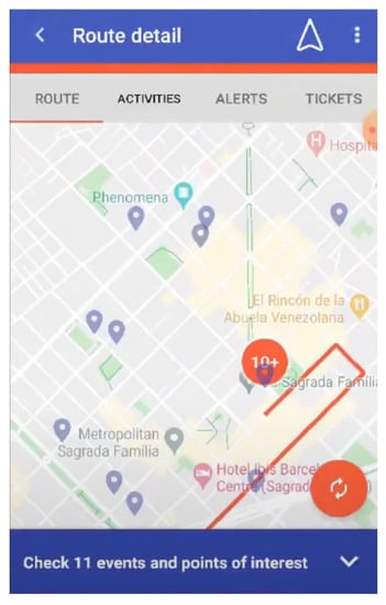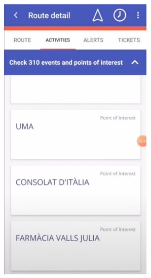 Moreover, is possible to get some detailed information for each activity recommended, as Figure 8 shows. In this way, thanks to My-Trac app, the user can improve his experience not only by receiving suggestions for the best conveyance for the trip but also receiving customized activity recommendations and points of interest.
