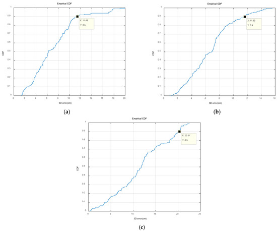 The CDF plot when the receiver is tilted: (a) 20 degrees; (b) 30 degrees; (c) 40 degrees.